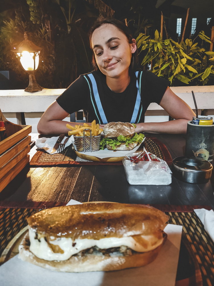 Nepavyko aplankyti daug kavinių, bet vis tiek turiu rekomendacijų. Pirma būtų „Food Lab Koh Samui“. Tai itališkas restoranas, kurio savininkas yra tikras italas. Turbūt galvojate, kad valgėme picas arba makaronus. Deja, teko išmėginti kitus vakarietiškus patiekalus. Aš valgiau burgerį su bulvytėmis, o Rokas buvo įkalbėtas išmėginti paninį. Tačiau jis buvo nepaprastas. Pats restorano savininkas mums paaiškino, kad mėsa dedama į panini yra paruošta ypatingu būdu. Gaila, kad neatsimenu kokiu. Antra vieta, kuri užstrigo mano galvoje buvo „Moonlight restaurant“. Ši vieta labai paprasta, bet jauki. Maistas irgi nėra įmantrus, bet skonis nenuvilia. Joje valgėme kelis kartus, nes jautėmės saugiai, kad gausime skanaus maisto.