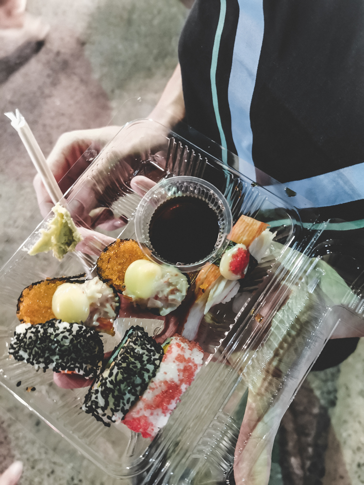 Kai vykome namo, darėsi vis sunkiau matyti kelią. Viena laimė, kad jį apšvietė žibintai. Grįžę dar kartą apžiūrėjome motorolerį ir pagaliau galėjome ramiai pasivaikščioti. Kadangi buvo savaitgalis, miesto gatvelėse buvo night market (nakties turgus). Vienoje gatvėje gausu įvairiausių kioskelių, parduodančių maistą ir gėrimus iš savo motorolerio būdelės. Galima rinktis nuo skanių blynelių iki tarakonų, užmautų ant pagaliuko. Kainos tikrai mažos, pavyzdžiui, blyneliai kainavo 60 thb, o vieno sushi kaina buvo tik 10thb. Išmėginome jų įvairiausių ir tikrai nenusivylėme skoniu. Kitoje gatvelėje galite rasti rūbų ir suvenyrų, jei jums reikia kokių lauktuvių. Trumpai tariant, naktinis turgus buvo, tos dienos atradimas, kuris užglaistė visas negandas išgyventas per tą dieną.
