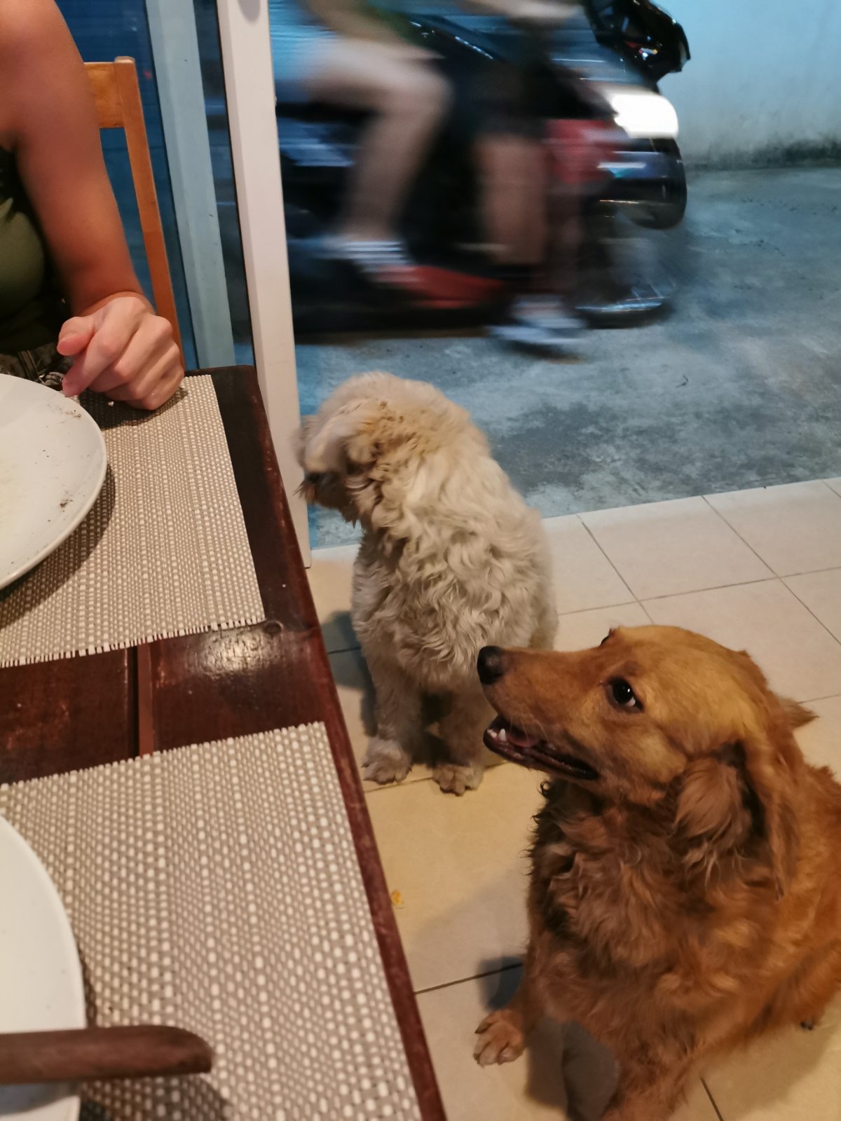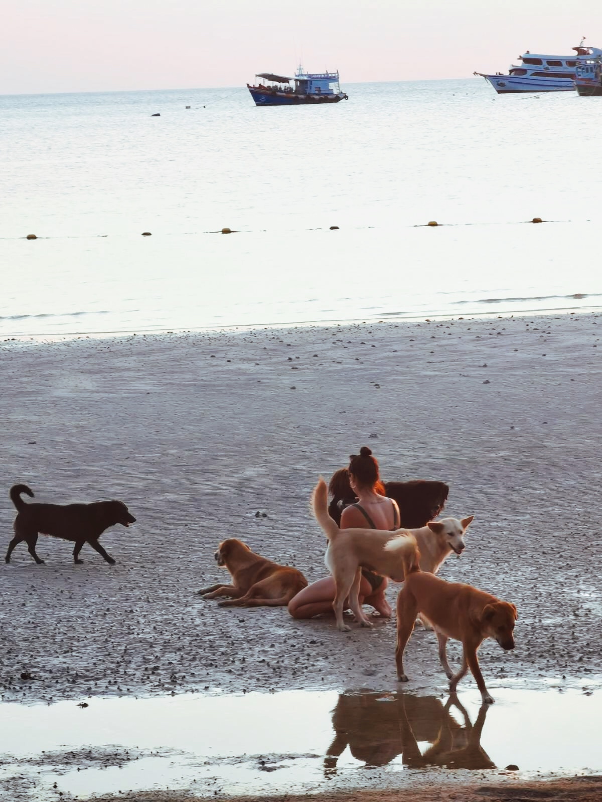 Vakarais ten žmonės ateidavo palydėti saulės ir tuo metu paplūdimys vėl atgydavo. Pasižmonėti išeidavo ir šunys, kurie gyvendavo pas restoranų šeimininkus ir būdavo prijaukinti. Tačiau ateidavo ir laukinukai, kurie krėsdavo visokias išdaigas. Tai šlepetę paimdavo, tai užšokdavo ir taip išgąsdindavo kitą šunį. Vieną vakarą nusprendžiau nufotografuoti vieną iš jų, bet po keletos minučių buvau apsupta, kokių penkių šunų. Net pasimečiau, kurį fotografuoti.
