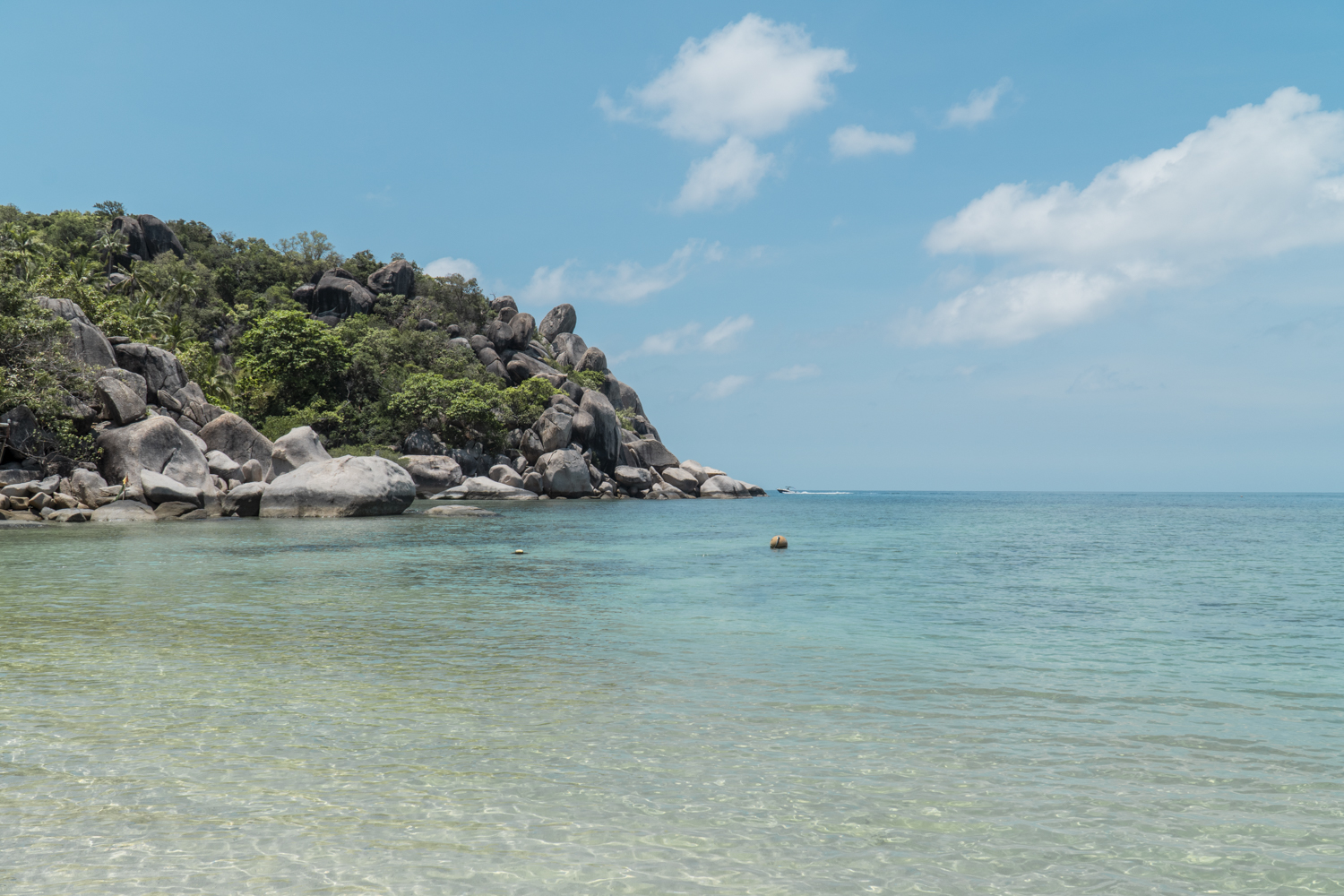 Kitą dieną vykome prie Shark Bay beach. Tai buvo privatus paplūdimys, kuriame reikėjo susimokėti po 100 thb žmogui. Smėlis buvo baltas ir smulkus. Maudytis taip pat buvo gera, nes nereikėjo pergyventi ar ant ko nors užminsime. Man asmeniškai, tai vienas iš gražiausių Koh Tao paplūdimių.