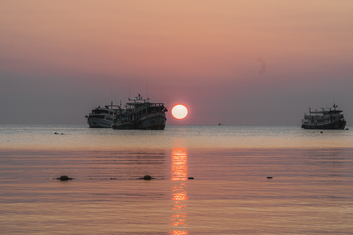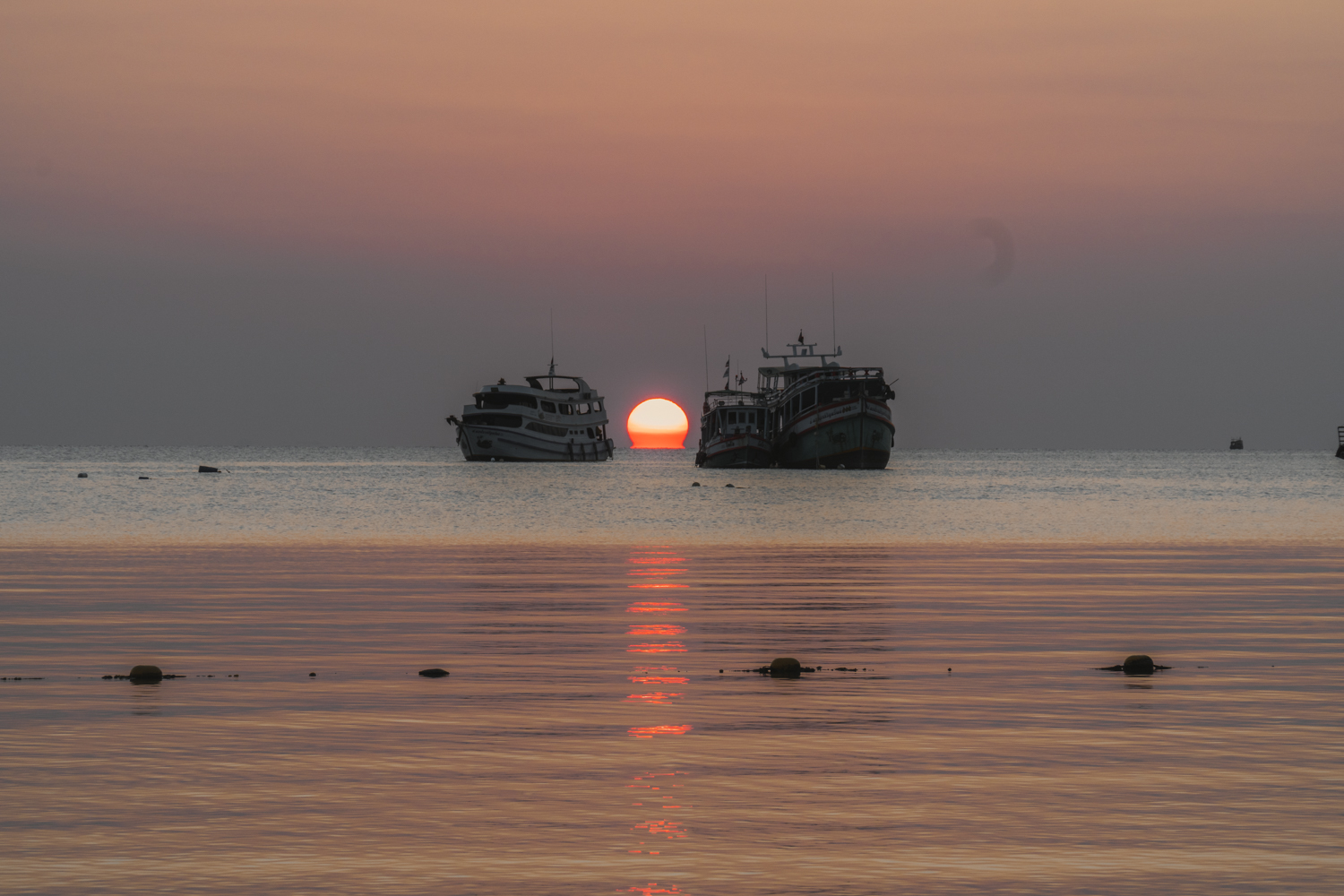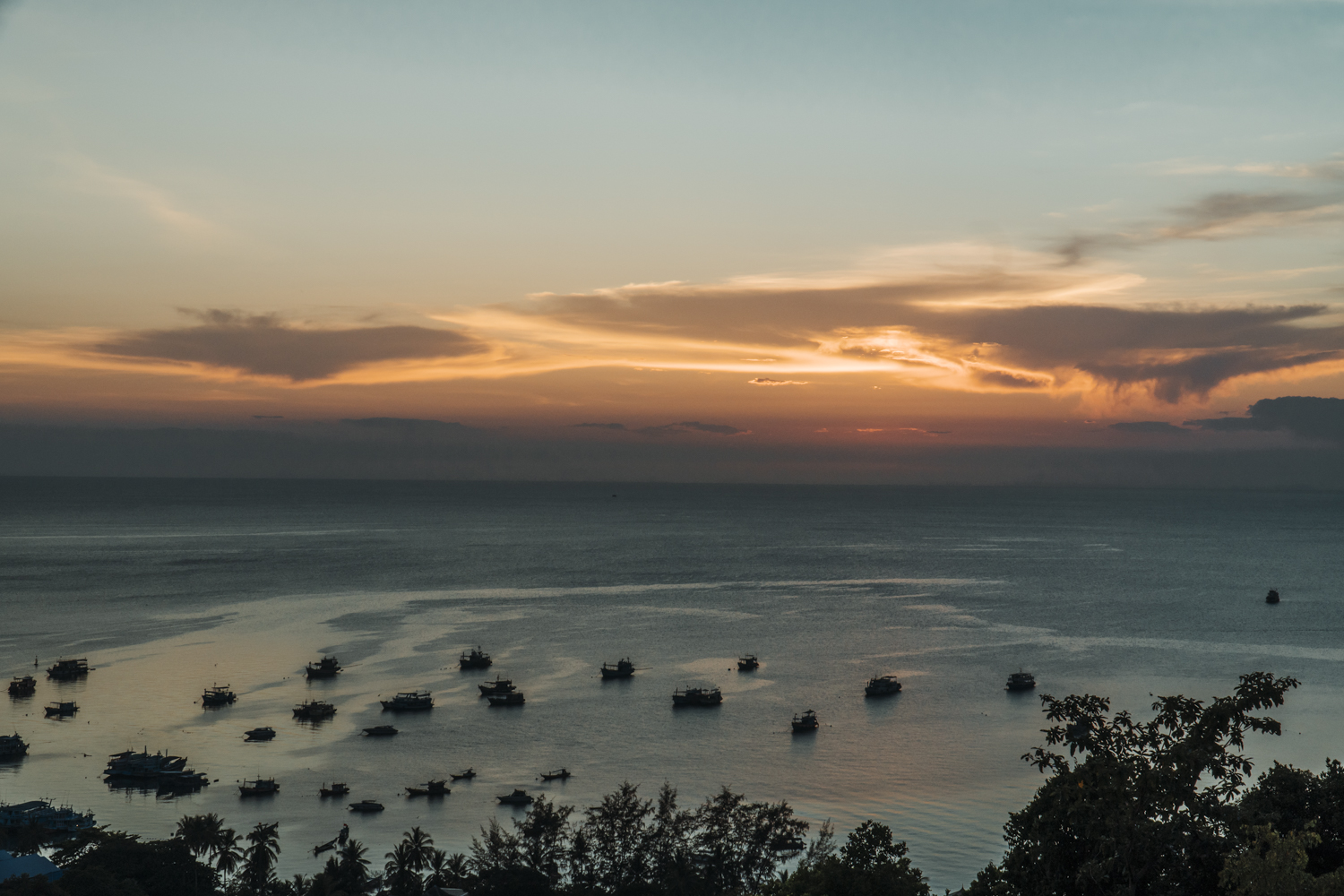 Vieną vakarą nusprendėme, kad norime stebėti saulėlydį ne prie jūros, o nuo kokios panoramos. Pasirinkome Sunset Seaview kavinę. Buvo tikėtina, jog jie nedirbs, bet manėme, kad leis pažiūrėti kaip leidžiasi saulė. Kai nuvykome ten, buvome ne vieni. Atvažiavo dar keletas turistų ir kažkoks fotografas. Užsiėmėme vietas ir grožėjomės vaizdu. Nuo tos vietos matėsi ne maža dalis Koh Tao, todėl galėjome skaičiuoti vietas, kuriose jau buvome. Viskas buvo ramu ir gražu, kol vienas iš turistų nesugalvojo daryti backflip’o (atbulas kulversti ore). Vienas turėjo filmuoti, o kitas atlikti šį triuką. Mes stebėjome iš šono ir žiūrėjome, kuo viskas baigsis. O baigėsi taip, kad darydamas backflip’ą, jis pramušė grindis ir jose liko skylė. Gerai, kad buvo dirbtinės žolės danga, nes jis būtų įkritęs, o pati terasa buvo ant pastolių. Jam pasisekė, nes tos vietos savininkai buvo geri žmonės. Pasijuokė ir numojo į viską ranką.