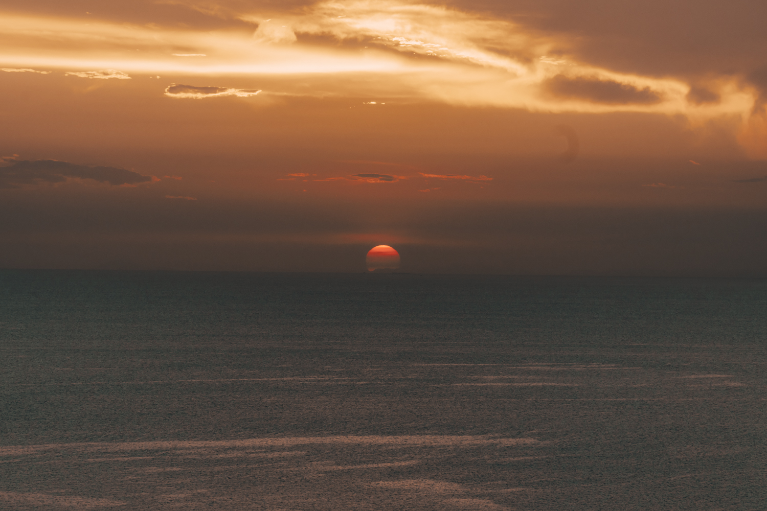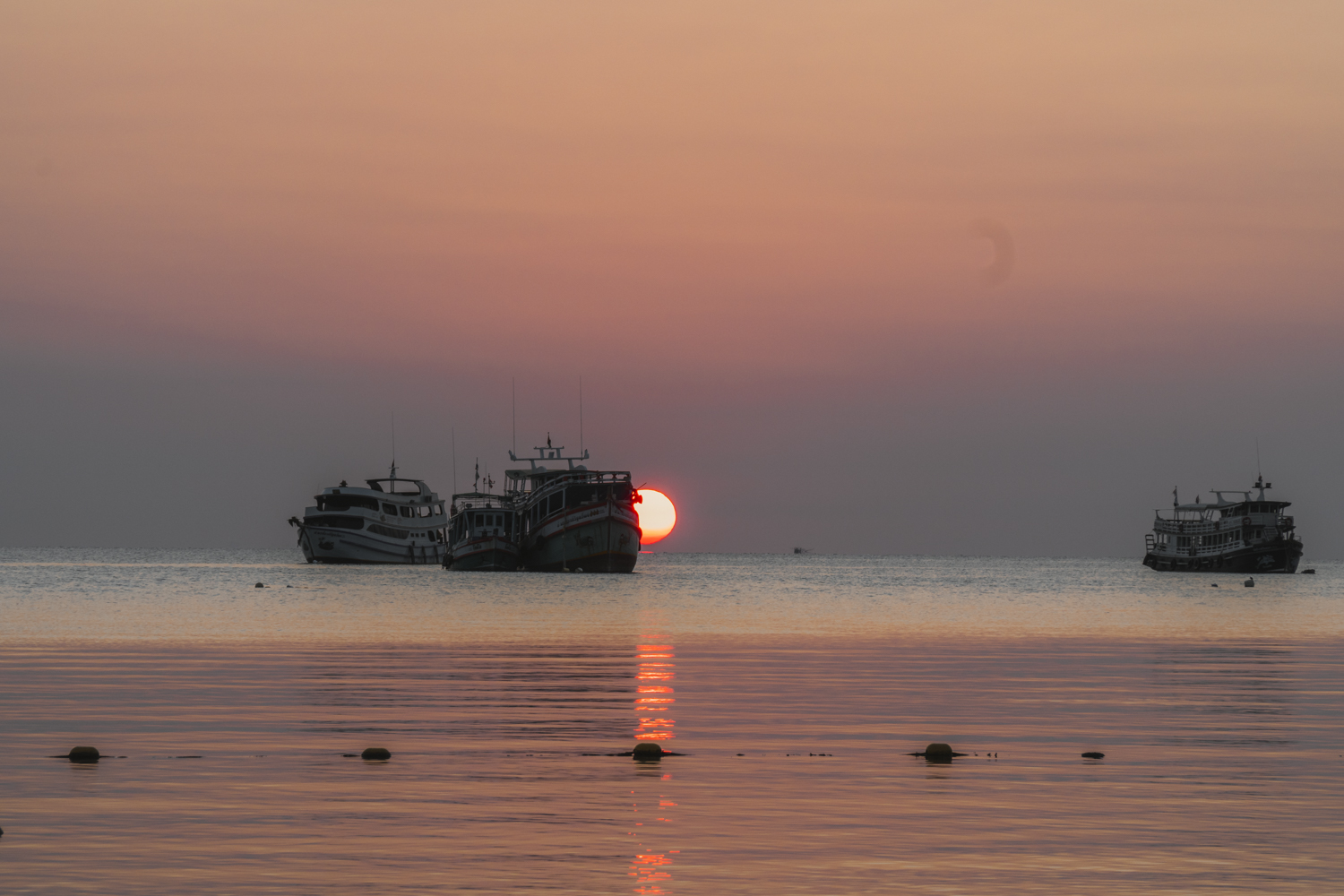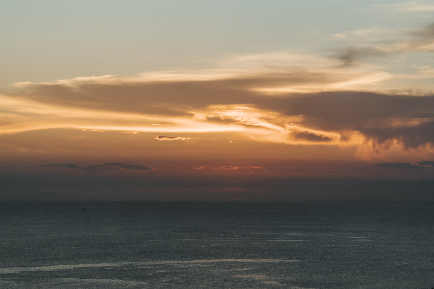 Vieną vakarą nusprendėme, kad norime stebėti saulėlydį ne prie jūros, o nuo kokios panoramos. Pasirinkome Sunset Seaview kavinę. Buvo tikėtina, jog jie nedirbs, bet manėme, kad leis pažiūrėti kaip leidžiasi saulė. Kai nuvykome ten, buvome ne vieni. Atvažiavo dar keletas turistų ir kažkoks fotografas. Užsiėmėme vietas ir grožėjomės vaizdu. Nuo tos vietos matėsi ne maža dalis Koh Tao, todėl galėjome skaičiuoti vietas, kuriose jau buvome. Viskas buvo ramu ir gražu, kol vienas iš turistų nesugalvojo daryti backflip’o (atbulas kulversti ore). Vienas turėjo filmuoti, o kitas atlikti šį triuką. Mes stebėjome iš šono ir žiūrėjome, kuo viskas baigsis. O baigėsi taip, kad darydamas backflip’ą, jis pramušė grindis ir jose liko skylė. Gerai, kad buvo dirbtinės žolės danga, nes jis būtų įkritęs, o pati terasa buvo ant pastolių. Jam pasisekė, nes tos vietos savininkai buvo geri žmonės. Pasijuokė ir numojo į viską ranką.