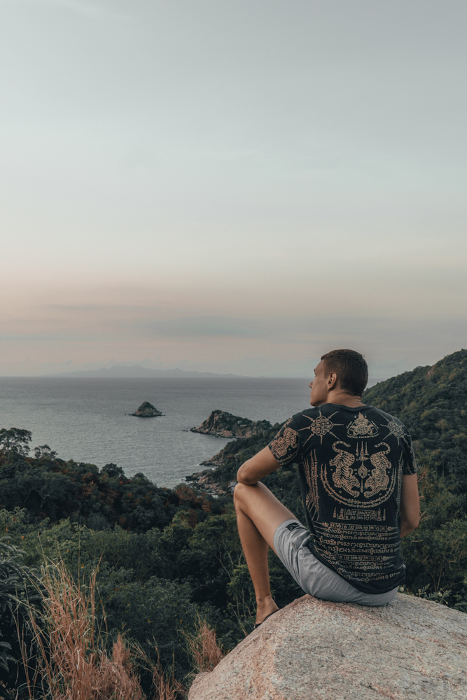 Kol buvome saloje, planavome stebėti saulėtekį. Tam pasirinkome Love Koh Tao View point. Nuo ten turėjo atsiverti vaizdas į jūrą. Iš vakaro nusistatėme žadintuvus ir ėjome miegoti. Ryte tik pabudome, iš karto pakilome ir nieko negalvojome apie motorolerį. Tik atėję prie jo nieko nematėme. Galinė padanga atrodė pripūsta. Bet kai atsisėdome ir mėginome važiuoti, ji buvo visiškai subliuškusi. Buvo 6:00 valanda ryto, todėl niekas jos nebūtų sutvarkęs. Pastatėme motorolerį į vietą ir ėjome prie šalia esančios apžvalgos aikštelės. Kiekvieną dieną pravažiuodavome ir nesuprasdavome, kas tai per vieta. Po to, joje nebebuvo galima lankytis, bet kadangi buvo rytas ir nebuvo jokių žmonių, surizikavome ir likome patenkinti, šiuo pasirinkimu. Labai džiaugiuosi, kad joje apsilankėme, nes jei būtume praleidę šią vietą ir vėliau sužinoję apie ją, būtų apmaudu.