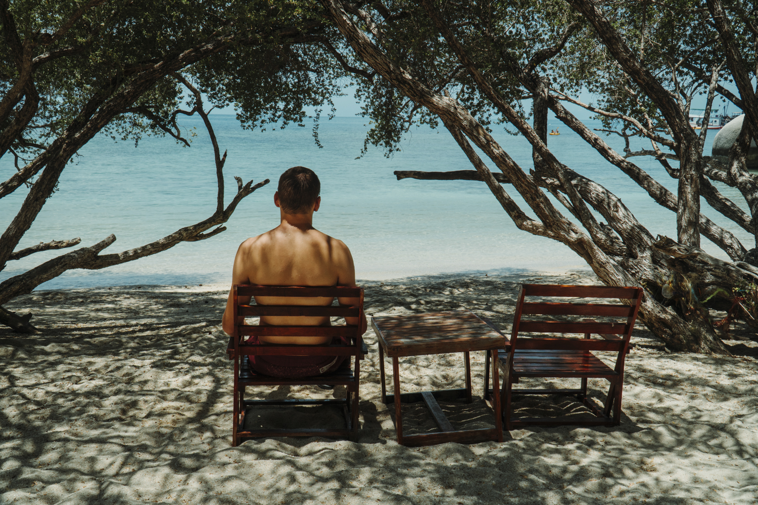 Vieną vakarą nuėjome į Sairee beach ir paleidome droną. Ir vos už kelių minučių prisistatė ponas Rembo. Atėjo tekinas, nes išgirdo drono garsą. Iš pradžių sunerimome, nes galvojome, kad prikibs dėl drono ir bus problemų. Pasirodo, jis šiaip sužavėtas ir patarimų norėjo duoti. Pradėjo jis pasakoti, kad visi jį vadina Rembo ir kaip jis jaunas būdamas plaukė link Nang Yuan Island su turistine valtimi ir iššoko iš jos vienui vienas (ko nebuvo galima daryti), kad galėtų viską nufilmuoti. Bet dabar jau taip neplauktų, nes neužtektų jėgų. Tuomet, kaip senam bičiuliui, jis pradėjo dalinti mums patarimus. Sako: tu plauk ten, žinai ir nufilmuok taip, žinai. Arba ne. Geriau skraidink droną į tą pusę, tada tikrai bus geri kadrai, žinai. Ir taip kelias minutes, jis mums siūlė filmavimo idėjas. Mes su Roku stovėjome ir linksėjome galvomis, kad sutinkame su jo nuomone, nors giliai širdyje bandžiau suvokti, kodėl jis mums tai siūlo. Tada jis pradėjo pasakoti apie Viktorą. Teigė, kad galime pas jį nueiti ir jis mus nuplukdys prie tos salos, nors tuo metu to nebuvo galima padaryti, nes jau buvo įvestas karantinas. Turėjome eiti paplūdimių ir ieškoti didelės iškabos „VICTOR“. Žinoma, taip nesielgėme, bet buvo malonu su juo pabendrauti. Dar kalbant su Rembo praėjo toks užsienietis, jaunas vyrukas, kuris su juo pasisveikino. Sako jam : „Hey, Rembo“. Tada supratome, kad jis čia kaip vietinis ir yra visų draugas. Pasirodo, nemelavo.